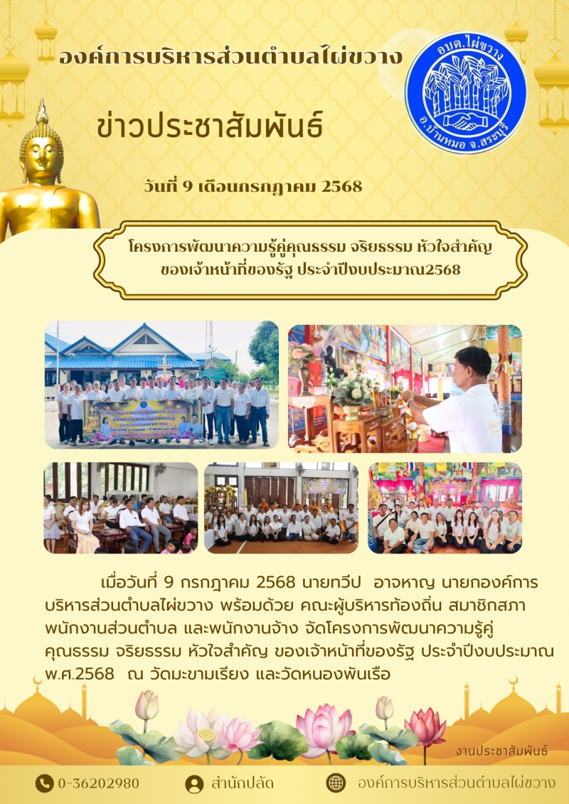 โครงการพัฒนาความรู้ คู่คุณธรรม จริยธรรม หัวใจสำคัญของเจ้าหน้าที่ของรัฐ ประจำปีงบประมาณ 2568...